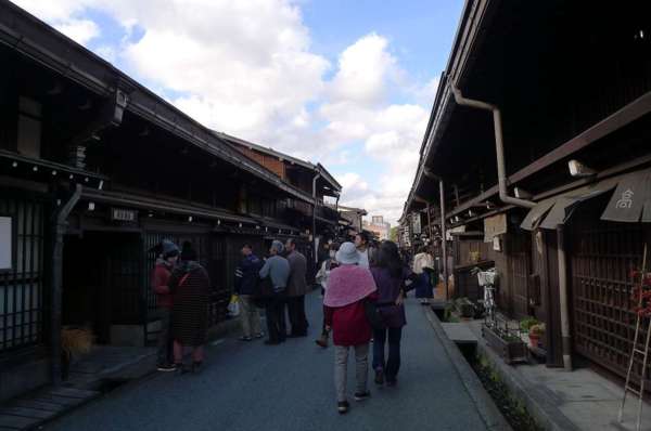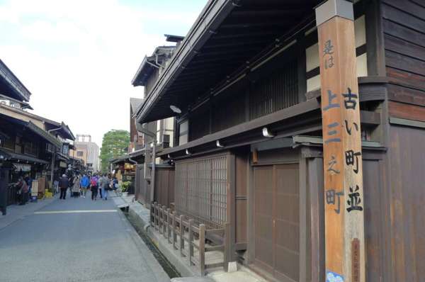 高山三之町古街:為昔時商家聚集的城下町中心三之町古街,保存其傳統古宅,有小京都之美稱;黑木格、低屋簷、白紙障的舊式民家一間接一間,在這裡散步,可以體會為何日本女性會為高山市著迷。從江戶末到明治初年建的町家是庶民、商賈活動的地方,高山老街古樸的街道,兩側賣小東西的古舖、家具店、味噌店、酒藏十分發人思古幽情,彷彿回到了江戶時代。