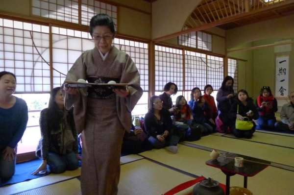 品嚐道地日式綠茶並配上和果子甜點。