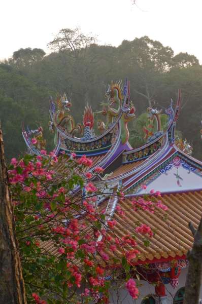 而玉衡宮就在孔廟的上方,外觀還很新穎,從玉衡宮可以俯瞰象山村落和遍野的茶園。