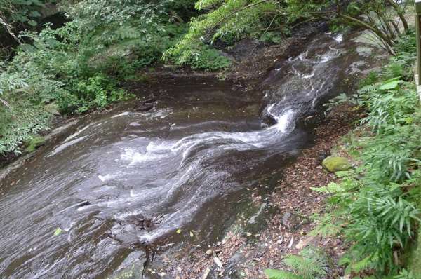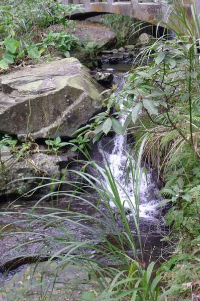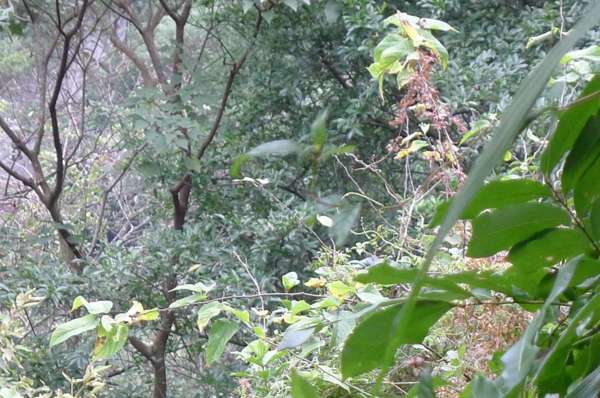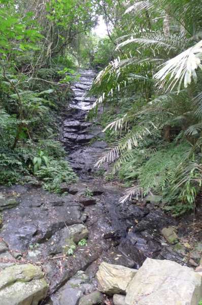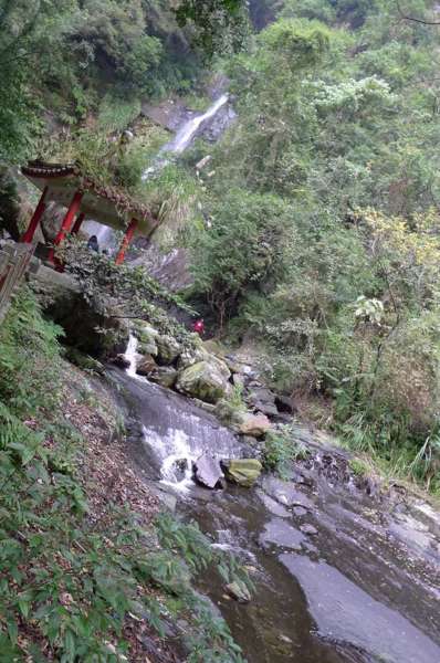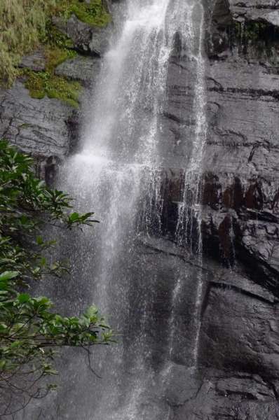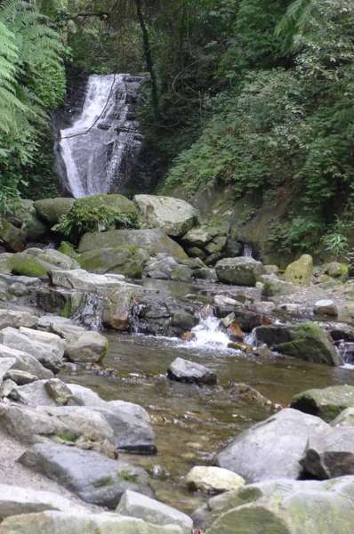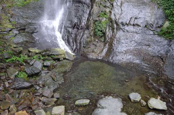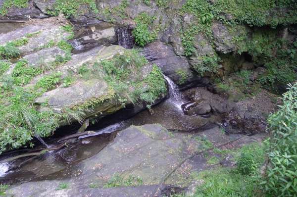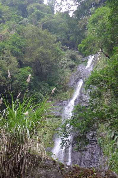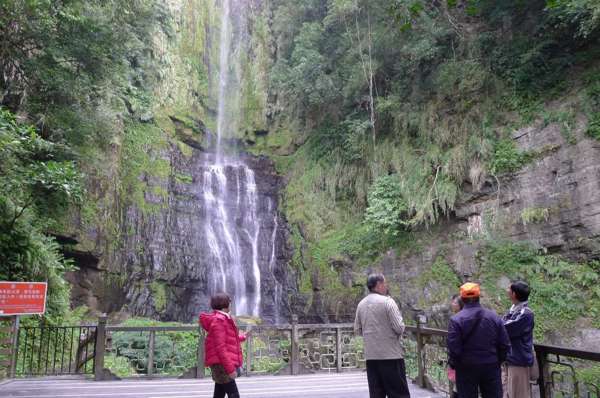 一練飛瀑倒瀉而下,故名「五峰旗瀑布」