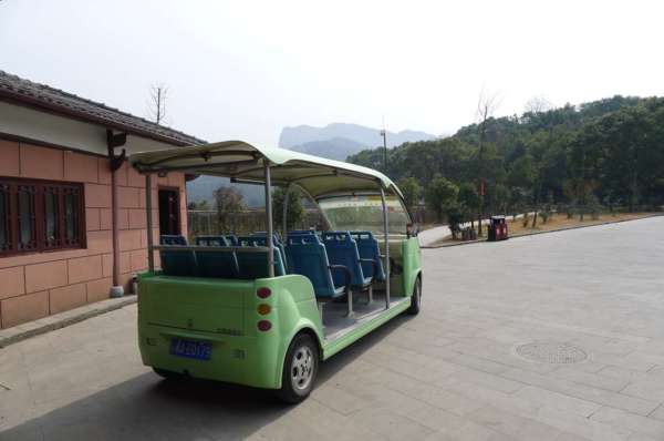 電瓶車載大家逛鳳凰溝景區,中間停兩站,一為茶海及茶博物館,二為梅子林。