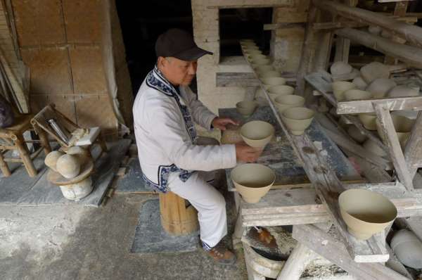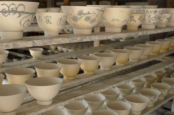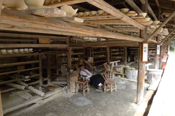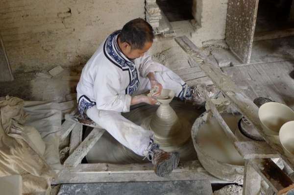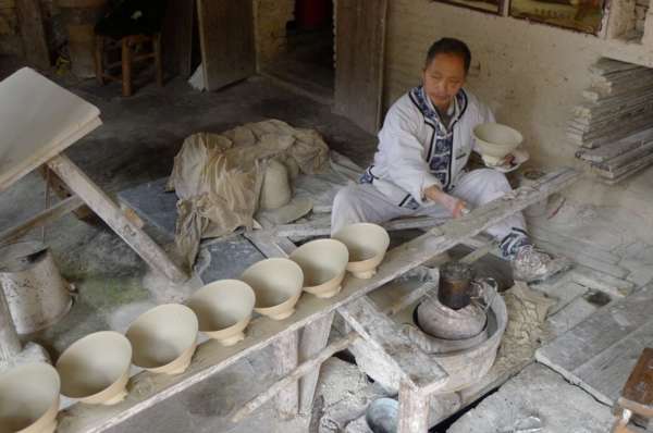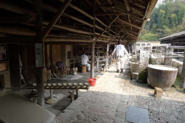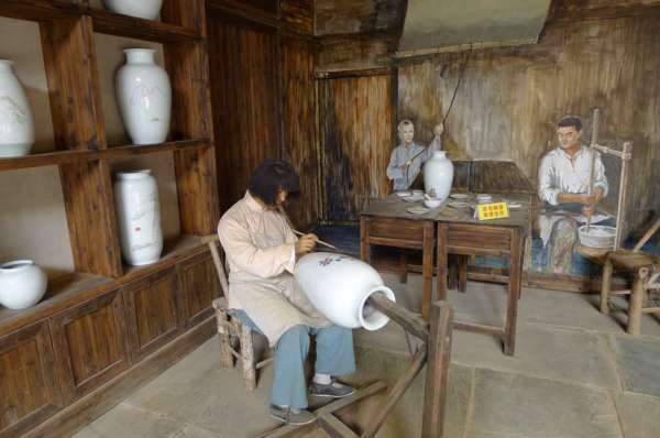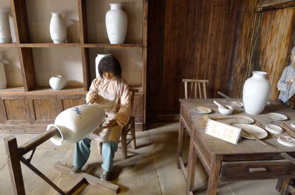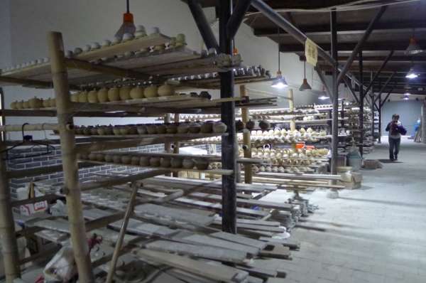 坯房內,工人們以傳統的手工制瓷工藝操作,妙手神工讓遊人驚歎不已。