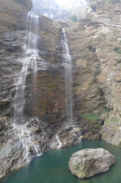 二疊彎曲,直入潭中。「上級如飄雪拖練,中級如碎玉摧冰,下級如玉龍走潭」。