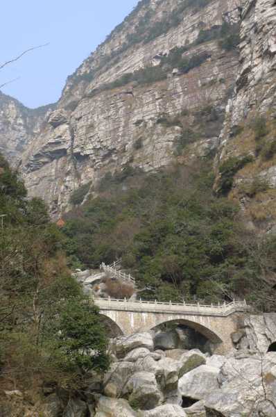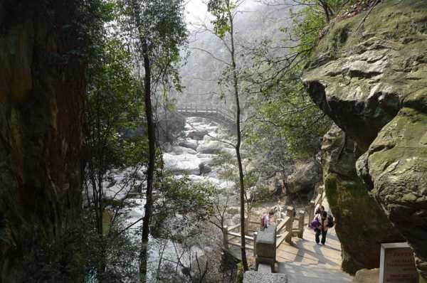 站在第三疊抬頭仰望,三疊泉拋珠濺玉,宛如白鷺千片,上下爭飛,令人歎為觀止。