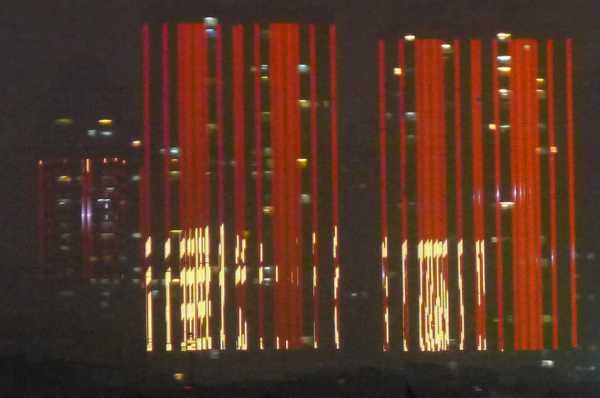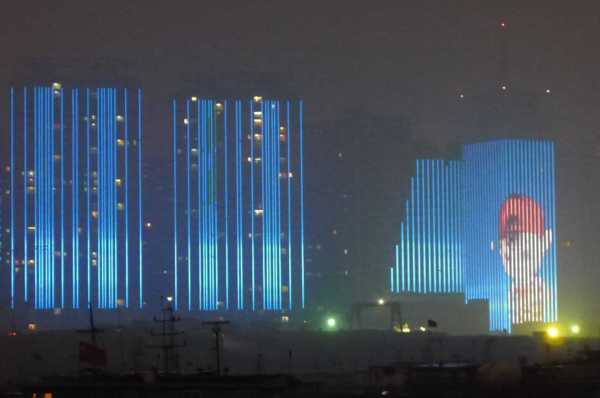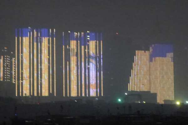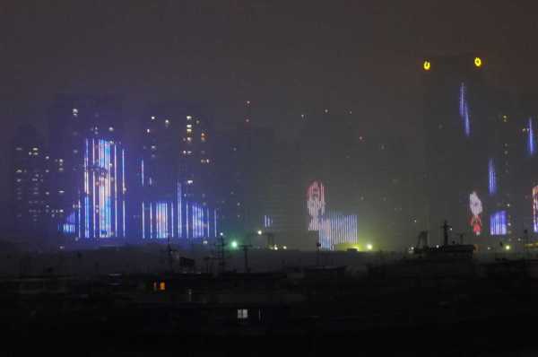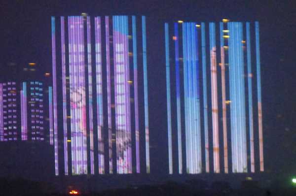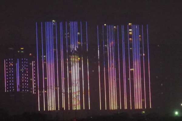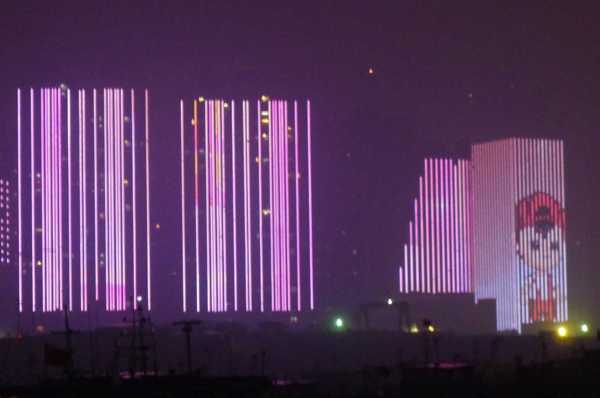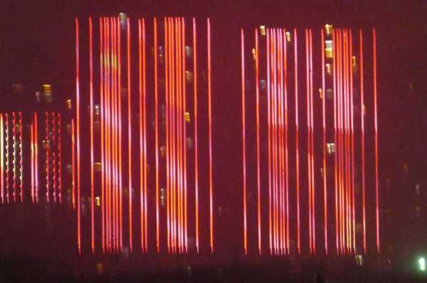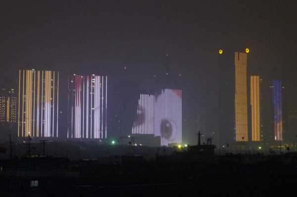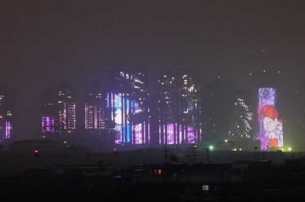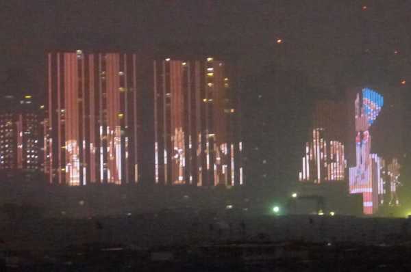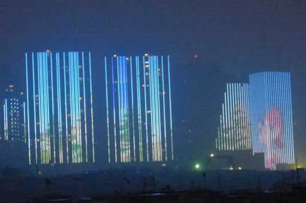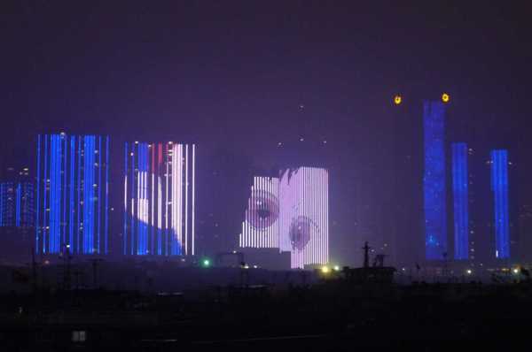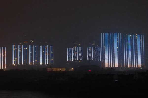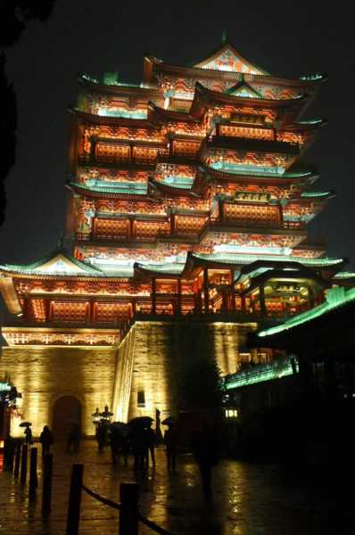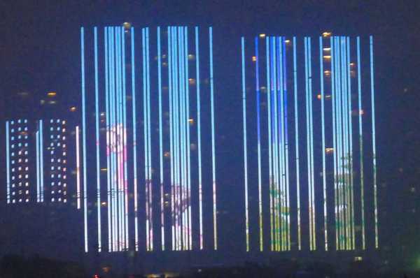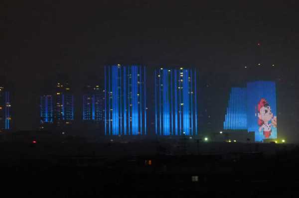 高樓牆面放映著滕王夜宴、王勃作序等20多個小故事組成的燈光微電影,展現了江西“物華天寶、人傑地靈”的歷史文化;