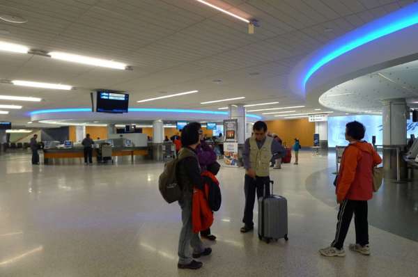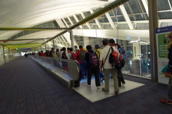 再入關,到阿拉斯加航空櫃台報到、登機。所以有踏上美國的土地。