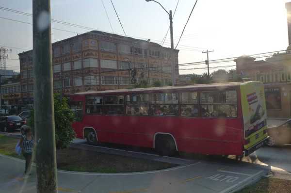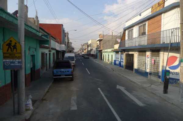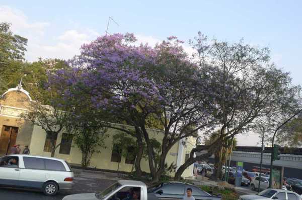 瓜地馬拉市 市區塞車,看路邊樹葉都黏著黑油垢。