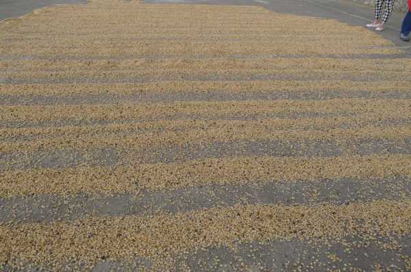 經6 ~ 7個月成櫻桃色果實採收浸泡去果皮洗淨乾燥脫殼選豆包裝