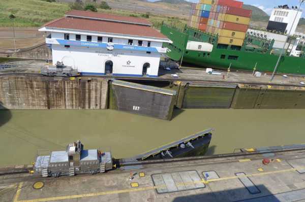 在太平洋一側有兩座船閘,在大西洋一側有一座船閘。在大西洋一側的船閘有三層,高達21米,