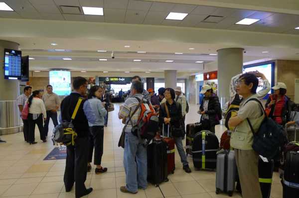 領到行李,16人往機場隔壁的賣場,等待搭其他航空公司直航班機的4位團友。