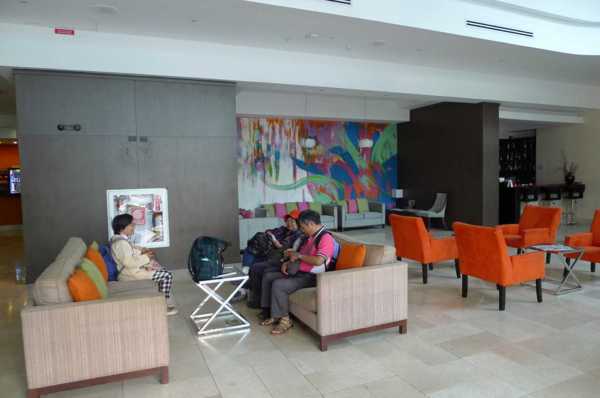 在旅社大廳等待