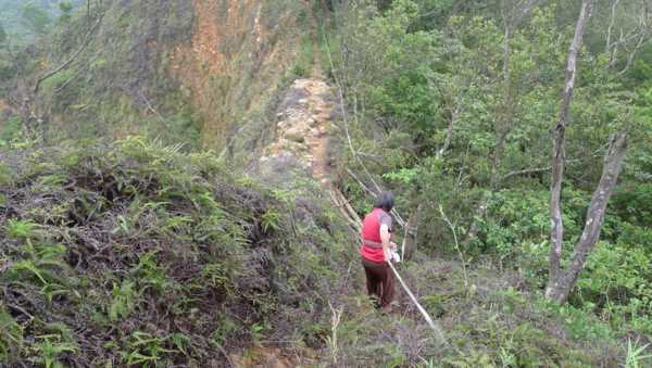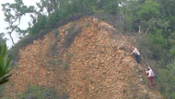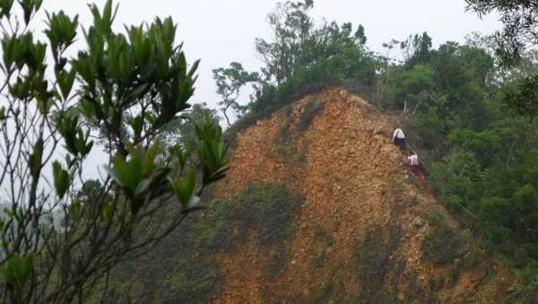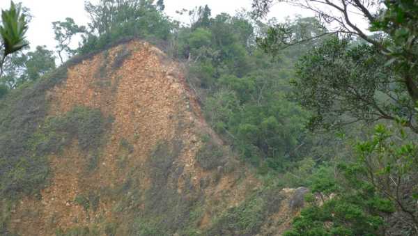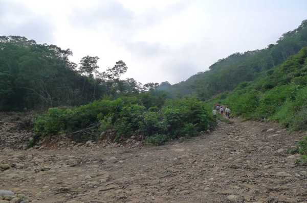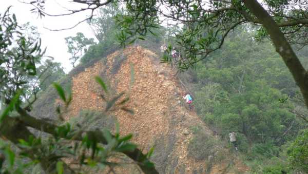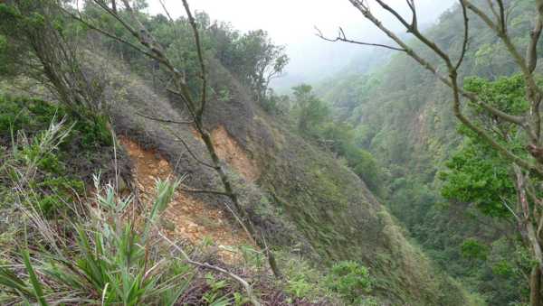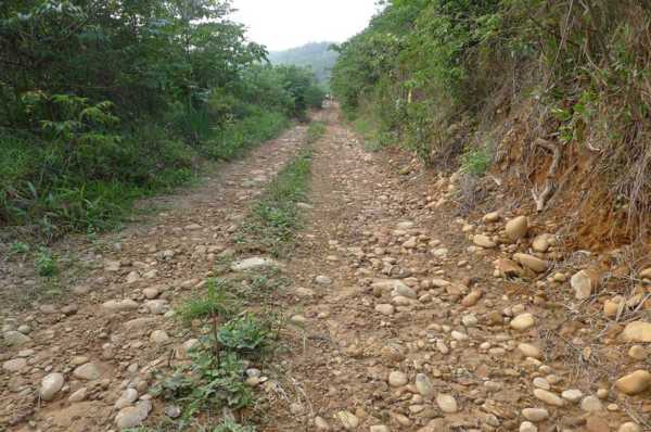 石礫、泥土 -不好走,感覺像走在土石流沖積過的地上。