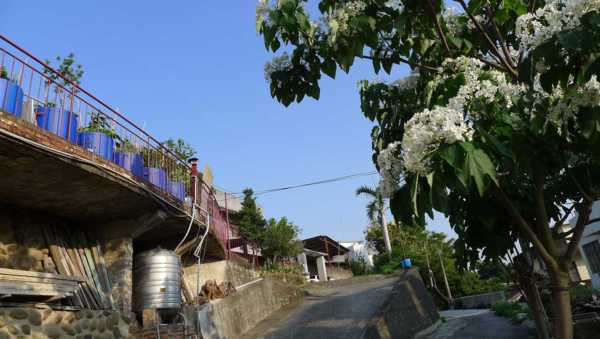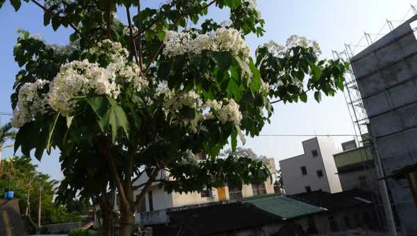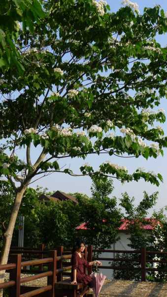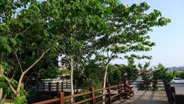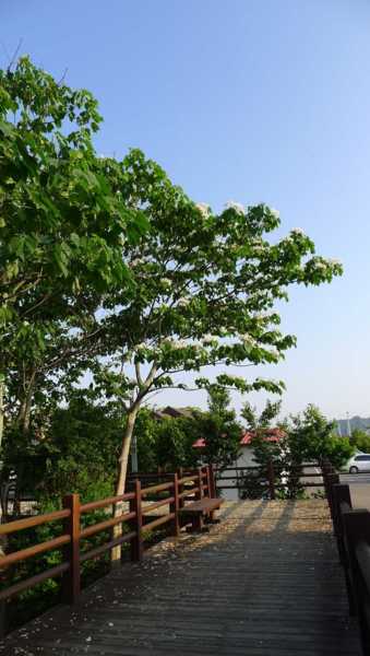 木棧道邊的桐花