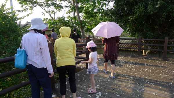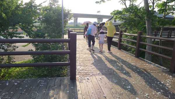 木棧道上桐花滿地
