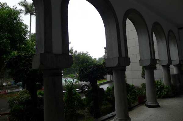 除此之外,兩旁圓形石柱則以斬石加工,主要門窗採大型落地式設計。