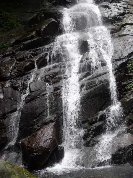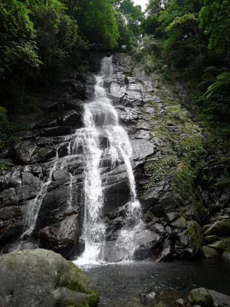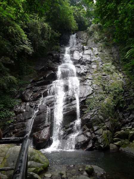 青山瀑布海拔高度 約 400 公尺,落差高達五十餘公尺,為傾斜 型瀑布,水量充沛,
