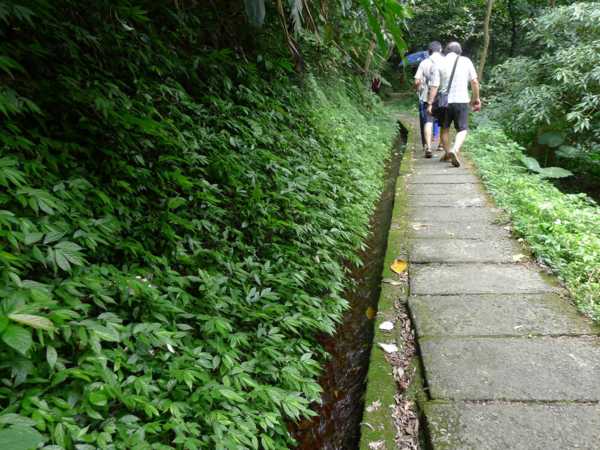 沿著當年為了灌溉梯田而修築的坎底寮圳,循著水聲淙淙,緩坡前行,悠閒的漫步在步道上。