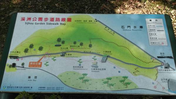 溪洲山:海拔578公尺,三等三角點#6296,小百岳#023。位於桃園石門水庫北側,