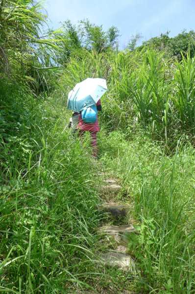 休息,享用<蔡姨婆提供、林伯公背負來的>冰鎮鳳梨-(用保鮮袋+冰塊)。