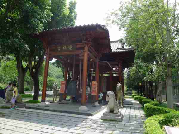 公園入口處左側的許願池,佇立著手持淨瓶、慈視眾生的九龍觀音。