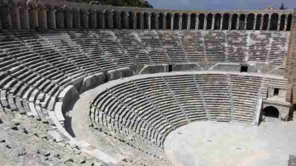 阿斯班多斯(Aspendos)的古羅馬劇場,是全小亞細亞保存最完整的圓形劇場,特殊的結構具有良好的集音效果,至今仍為世界知名樂團所熱衷的演出場地。