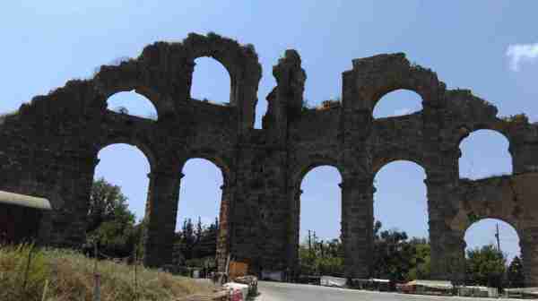 阿斯班多斯的水道橋,興建於羅馬時代,將附近山上的泉水,經過跨越河谷的渠道,
