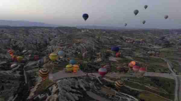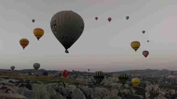 卡帕多奇亞Cappadocia熱氣球逍遙遊, 熱氣球騰空緩緩飛行,飛行在安那托利亞高原上。