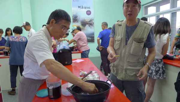 裝瓶之後,以餅乾沾鍋底醬-試吃。