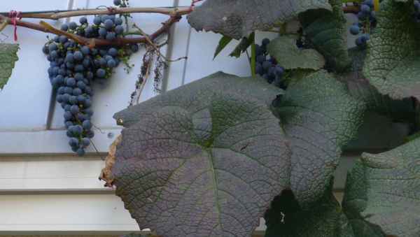 葡萄葉很大、果實很小。