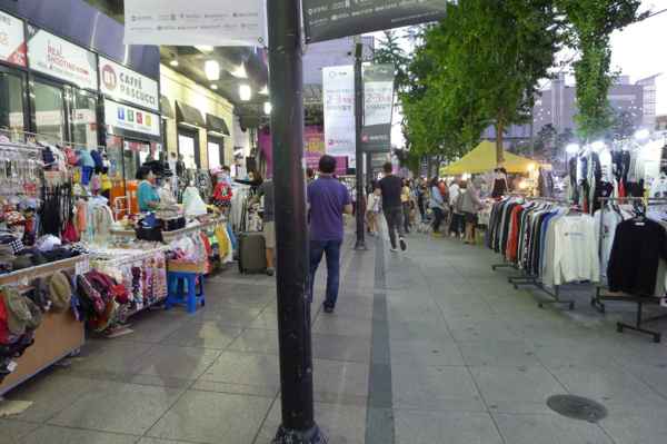 大樓前的臨時攤販密集。
