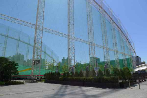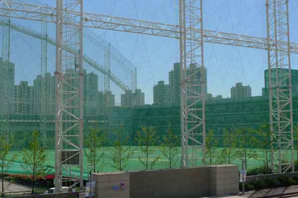 停車場上方是高爾夫練習場-球落在停車場上面的網子上,