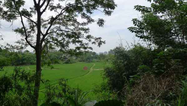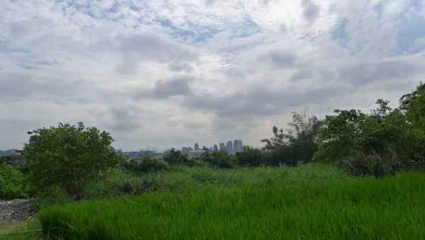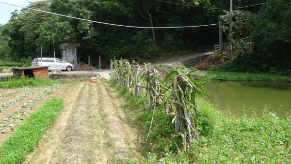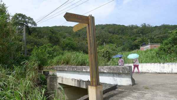 穿過高鐵高架橋下,右側有一小路標指示通往古道之入口
