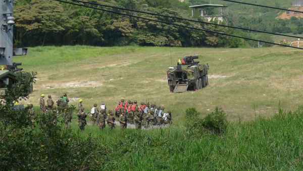 開始演練(直到下午3點多,我們在義民廟才聽到放炮聲。)