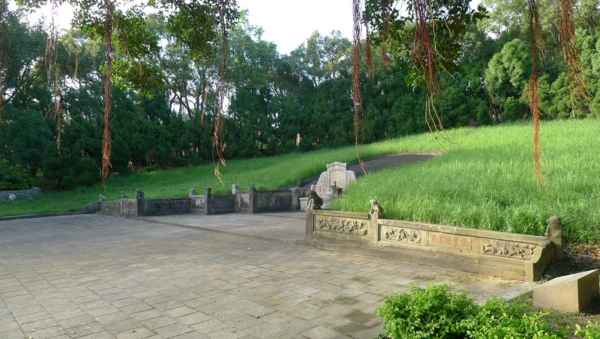 全墓為三曲手之形制,前為半圓型墓庭,左有金亭一座,右有福神石碑。