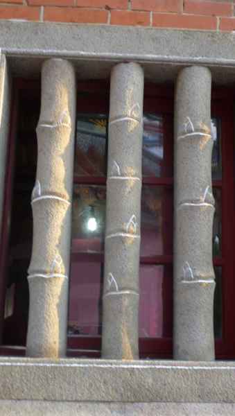 二樓窗戶和女兒牆間有水泥楣點綴,商號名稱鐫刻其上,簡潔大方。