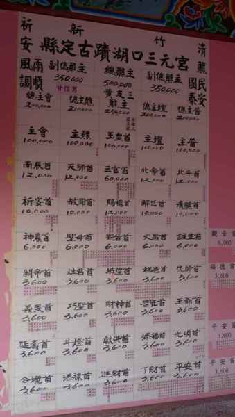 一直到民國7年(大正七年)才落成,屬坐南朝北的方位,宮內主奉祀三官大帝。