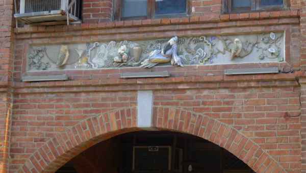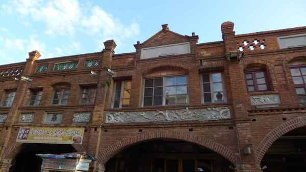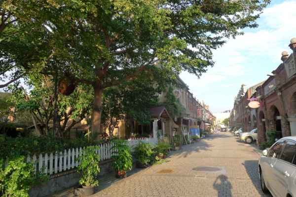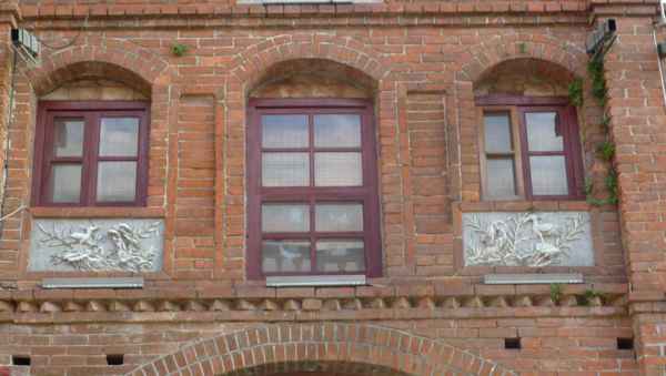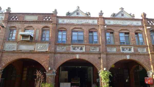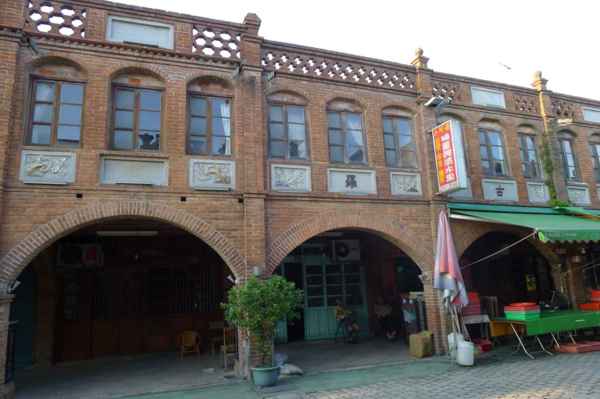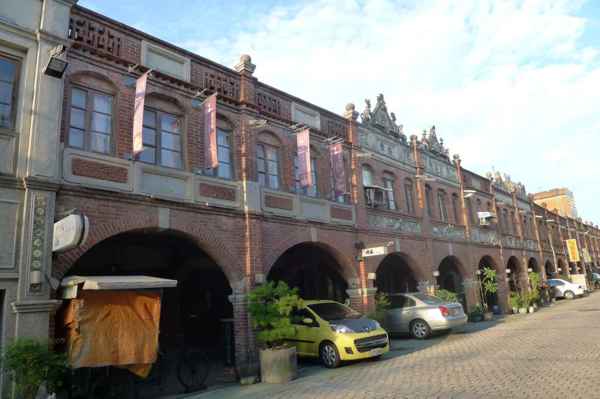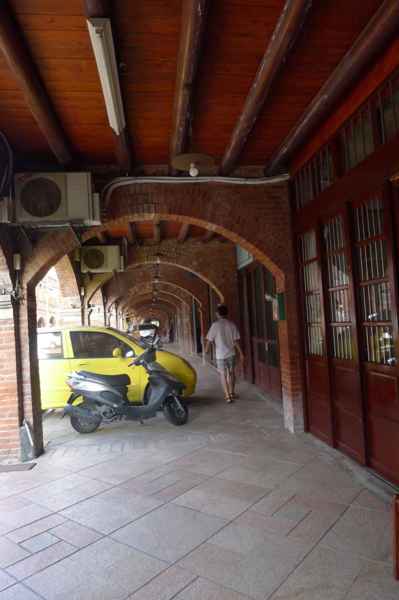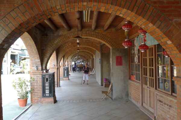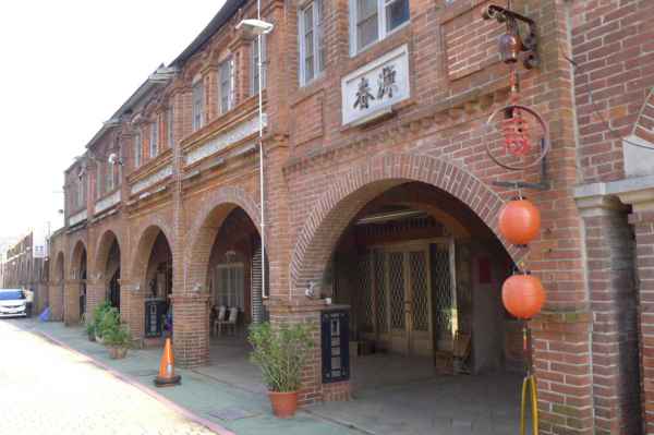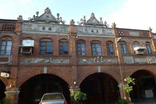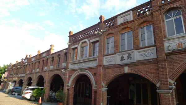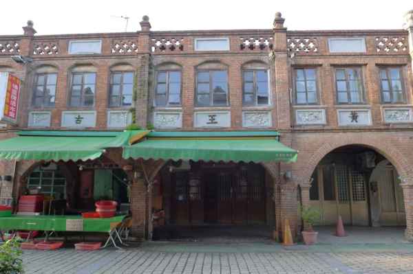 舍全部以紅磚為建材,老街的建築式樣較為特殊,牌樓立面屬於羅馬巴洛克建築,