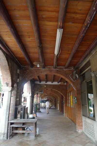 湖口老街中拱形的門廊戶戶相對,街屋整齊一致都設有騎樓,一樓柱節單拱走廊,