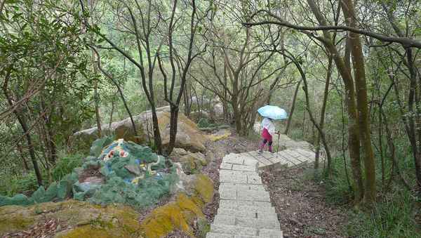 經過圓覺寺之後,再走過土地廟,不遠處往上爬走鯉魚山步道。
