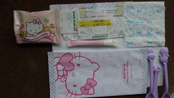 來回都搭乘長榮Hello Kitty 專機,到處都是kity圖案