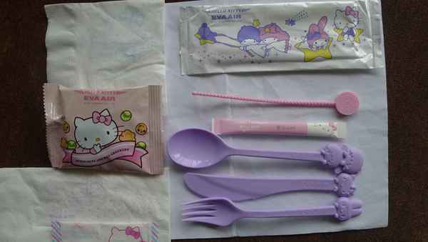 餐具、糖、餅乾、濕紙巾