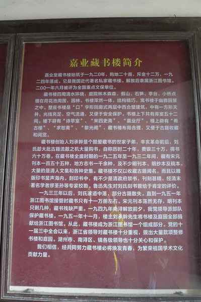 嘉業堂藏書樓是當地首富劉鏞的承重孫劉承干(次子劉錦藻之子)於1920-1924年所建的私家藏書樓,東面緊鄰小蓮莊,因溥儀題贈「欽若嘉業」九龍金匾而得名。全盛時期(1925-1932年)號稱藏書60萬卷、共16萬冊。