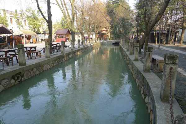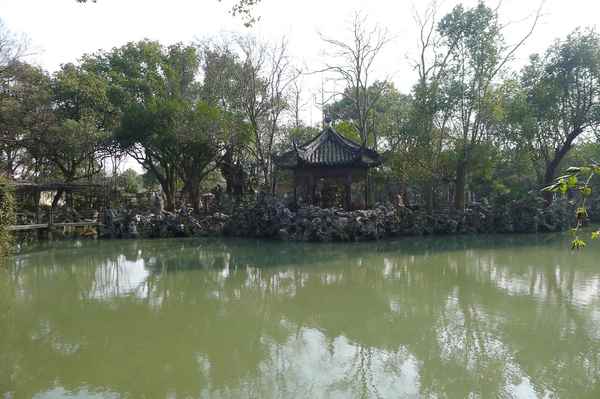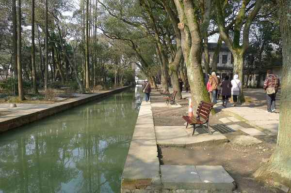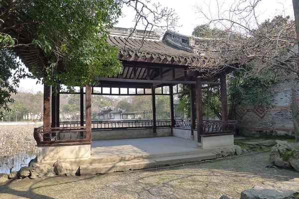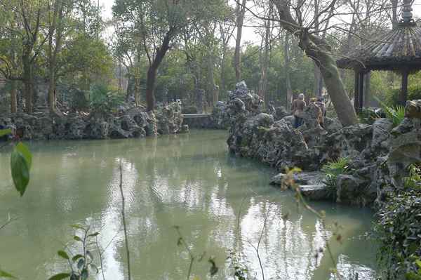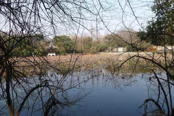 北岸有六角亭隱於垂柳翠竹間,極富江南水鄉情趣。