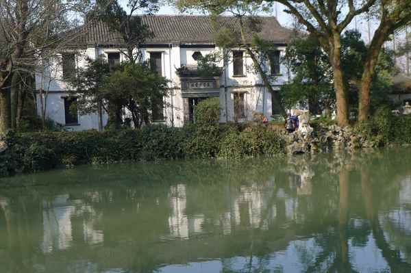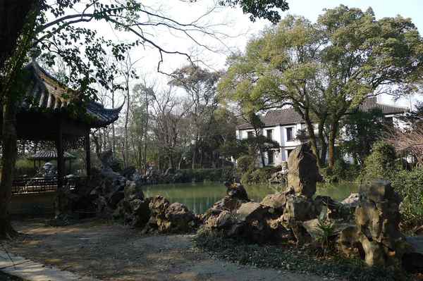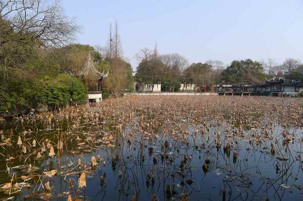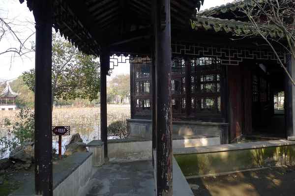 在外園中,亭台樓閣和曲橋長廊,均環繞荷花池周圍,傍水而建。橋畔古木扶疏,藤蘿蔓布。
