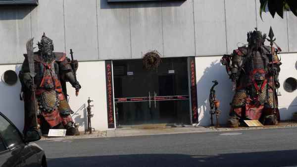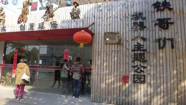 往嘉興途中,經過鐵哥們展示場,除夕這天下午,工作人員提早回家過年了,只在大門上貼上小小的告示。 我們只在牆外觀看。稍後,藝團來自泰國的印度遊客與我們一樣,在外拍照。