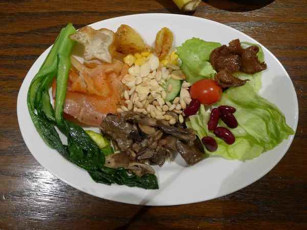 煙燻鮭魚、松子、核桃、杏仁片、蘑菇等無限量供應。
