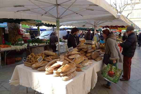 城市最有活力的地方在於市政廳廣場(Place de la Mairie),十七世紀的市政廳(Hôtel de Ville)、十六世紀的鐘樓嵌入十七世紀的天文鐘,加上十八世紀的穀物交易所(Halle aux Grains),圍繞在十八世紀的市政廳噴泉(Fontaine de l'Hôtel de Ville)周圍,有時候人們不免錯亂,彷彿回到過去。