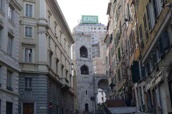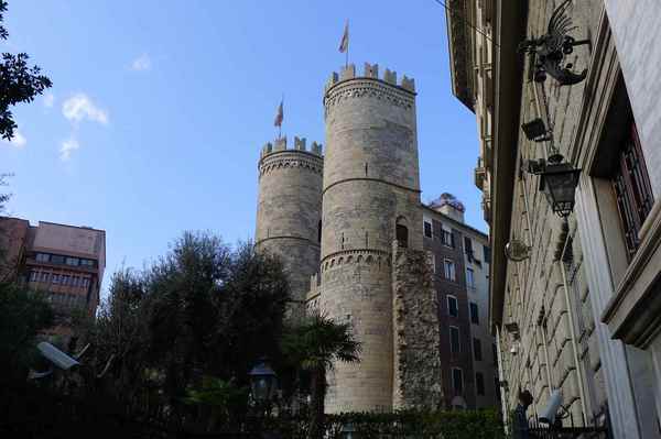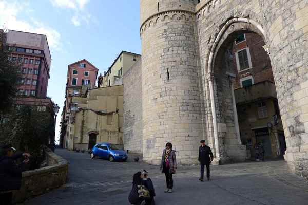 "雙柱碉堡(Porta Soprana)是中世紀熱那亞城的入口,為城牆遺跡中保持的最完整的一部。