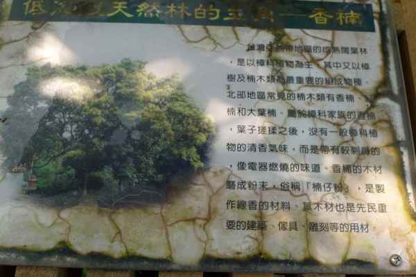 芝山岩上的老樟樹,高20多公尺,胸徑104公分,現今台北市最老的樹.由於開發與當初經濟的選擇,樟樹幾乎被被砍伐殆盡。其樹幹提煉樟腦油。日據時代台灣三寶:茶、糖、樟腦油。