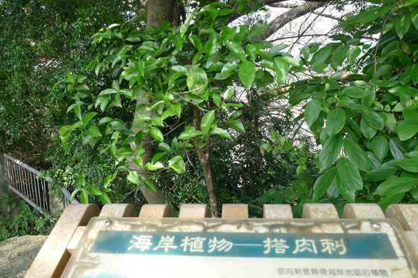 東南側石角瞭望台南邊外圍,尚有海濱植物- 搭肉刺,身上長這麼多刺是一種生存策略,因為生長需要強光,只好用刺搭在其他植物的身上往上爬,這樣才能獲得足夠的光源。身上長刺還可以保護自己不被草食性動物攝食。